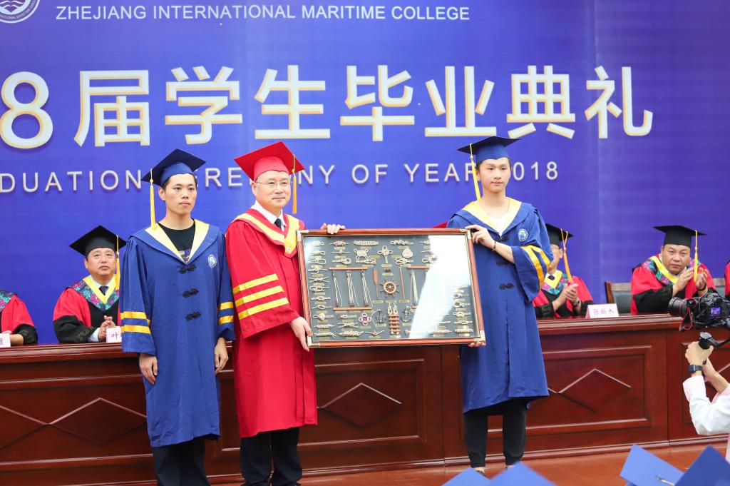 今年我校共有1857名应届毕业生,毕业典礼仍然分二级学院举行,航海工程学院、船舶工程学院、港口管理学院、海洋旅游学院和国际教育学院各为期半天,各二级学院院长主持典礼。上海华洋海事科技发展有限公司、常石集团(舟山)造船有限公司、顺丰速运有限公司、舟山财富君庭大酒店、舟山新爱婴早教中心等二十家合作企业的代表现场观礼,学校还通过大屏幕进行了现场直播。
