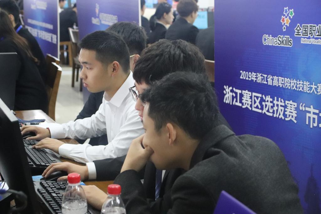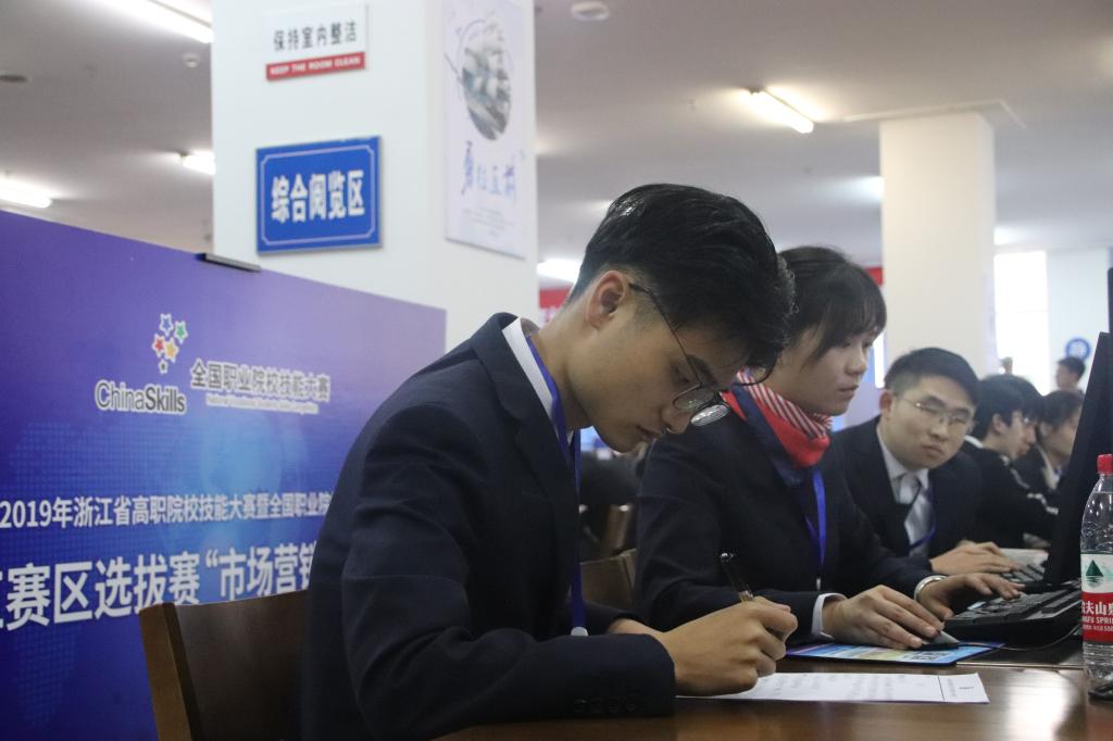 3月29日下午,为期两天的2019年浙江省高职院校技能大赛暨全国职业院校技能大赛浙江赛区选拔赛“市场营销技能”竞赛在我校圆满落幕。我校代表队由港口管理学院胡威、范展鸿、贺丽雯、骆佳成四位同学,何伟、杨碧瑛两位指导老师组成,他们与省内其他兄弟院校代表队同场竞技,展开了一番激烈角逐,获得了优异成绩。