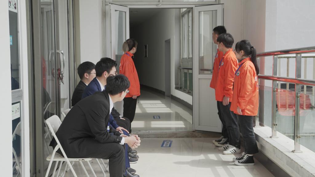 在场外,领队老师们焦急地通过大屏幕实时关注着场内选手的汇报展示情况,希望选手们沉着冷静,正常发挥,取得好成绩。