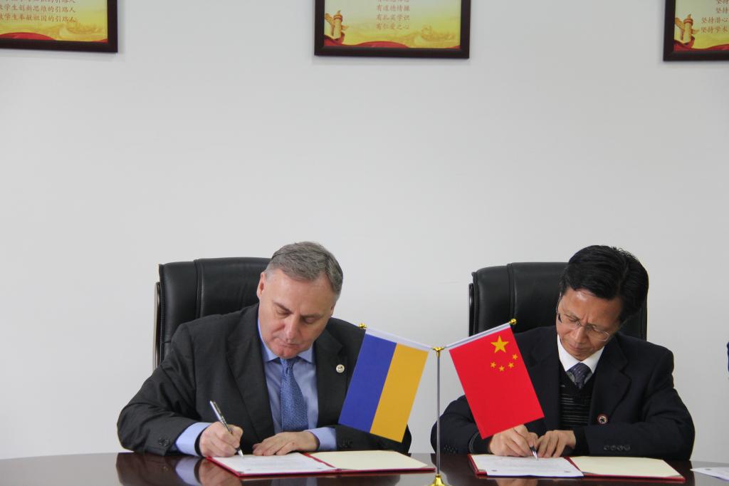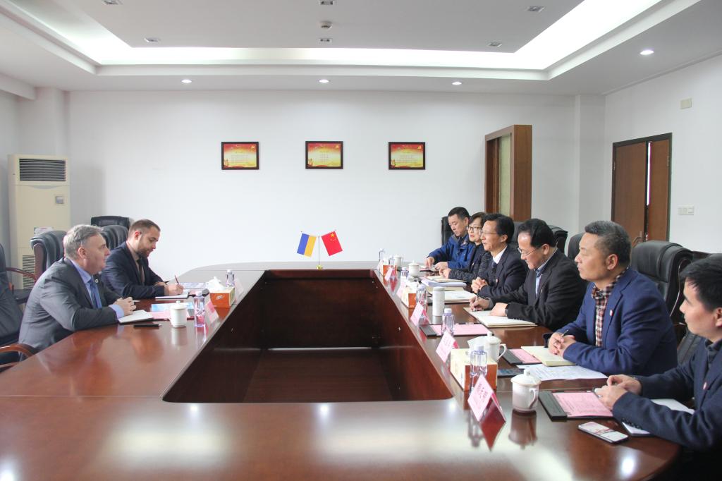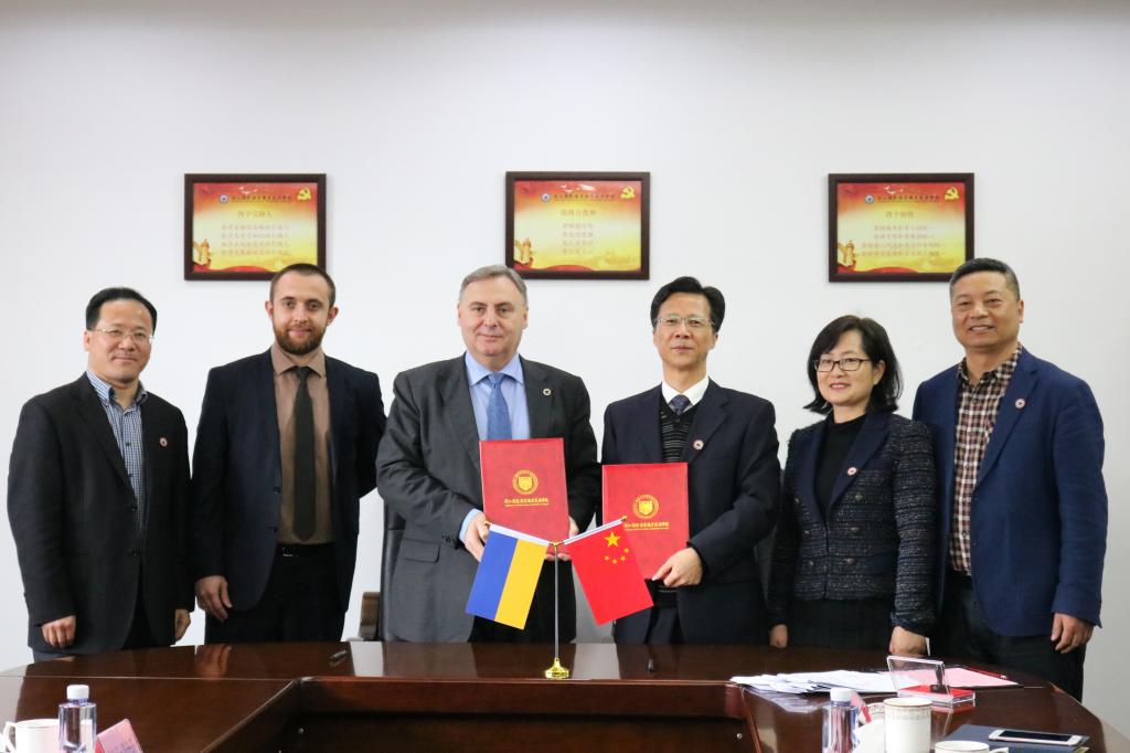 欢迎仪式结束后,在行政楼308会议室进行座谈,吴中平校长详细介绍了我校的基本情况和特色,就推进两校的合作和学校的国际化建设,提出四点想法:一是高质量办好已有的两个中外合作办学项目,本着“友好互利”的原则,解决中外合作办学项目存在的实际困难,把项目办成具有一定影响力的合作办学项目品牌。二是办好浙江-乌克兰国际海事学院,做好优质航海精品教育资源的输出,选派我校教师参与国立造船大学的航海教育。三是加强双方教师的科研合作,借助中乌海洋工程研究中心,促进国际技术转移和国外先进科研成果在舟山船舶海洋企业的转化。四是欢迎国立造船大学学生来我校进行文化交流和留学。乌方高度认同吴中平校长的提议。一是在目前三个合作专业(船舶工程技术、工业机器人、应用英语)的基础上,进一步拓展其它合作项目。二是开展博士学位的培养。三是关于科研与合作,双方拟共同举办国际会议,欢迎我校教师在乌方大学学报上发表论文,推进国际技术转移及成果转化。四是加强学生交流与互访。五是大力改善中国留学生的生活条件最后双方重新签订了科技合作框架协议书和中乌合作项目的相关合同。