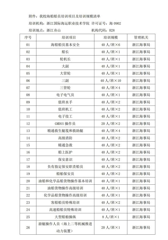 附:我校海船船员培训项目及培训规模清单