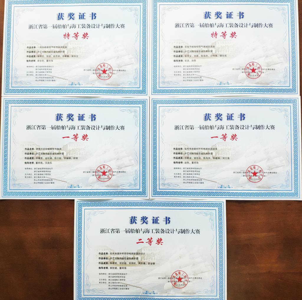 近日,我校船舶工程学院学生在浙江省第一届船舶与海工装备设计与制作大赛中荣获2个特等奖、2个一等奖和1个二等奖。