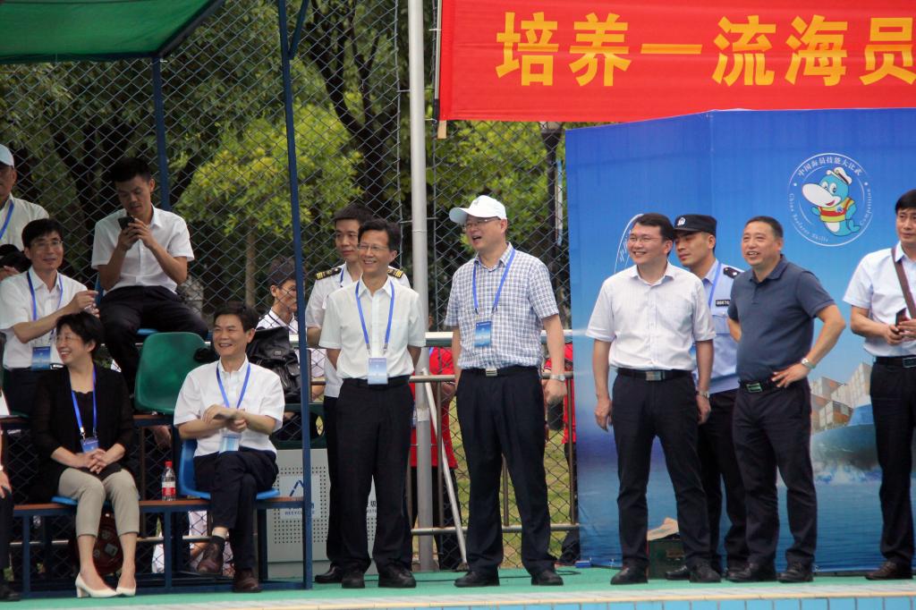 交通运输部海事局及省、市领导及嘉宾在我校党委书记陈松华和校长吴中平的陪同下,现场观摩了上午的铁人三项接力。(宣传部)