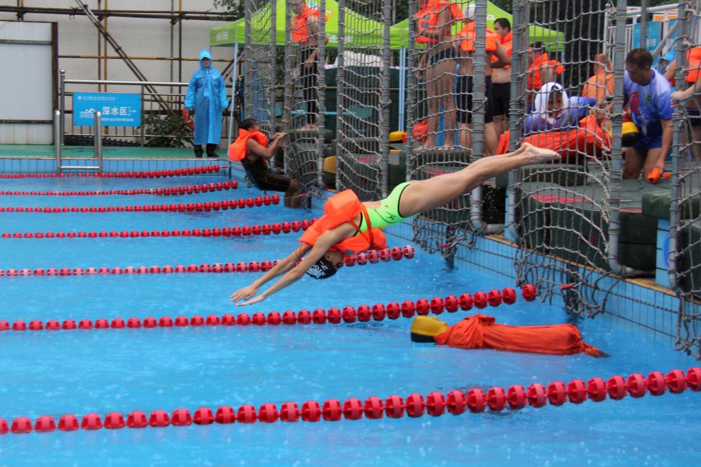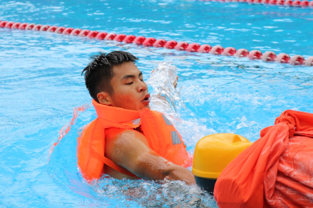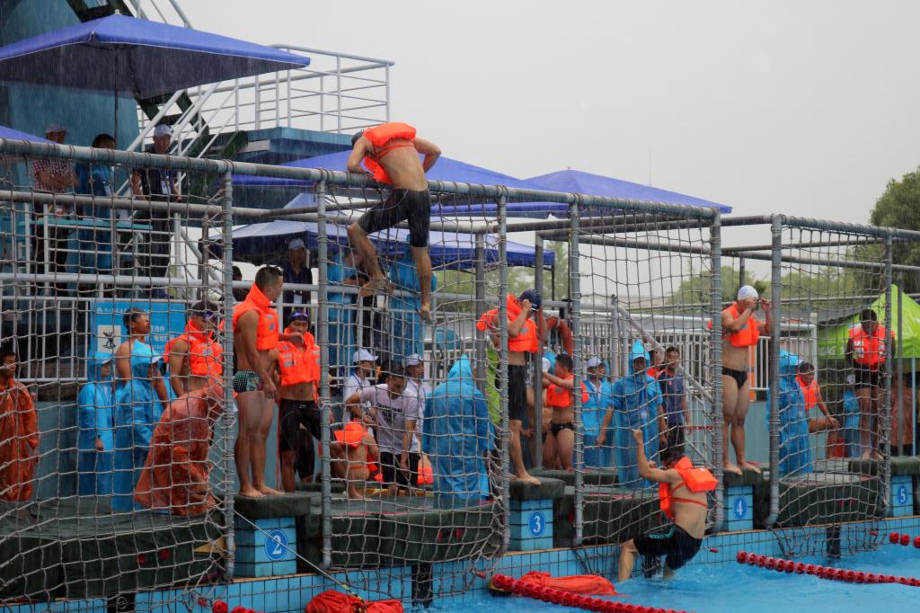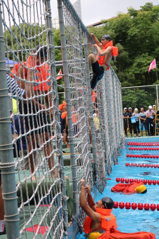 6月25日,备受期待的第五届中国海员技能大比武的热门项目——海员铁人三项接力比赛在我校游泳池精彩开赛。