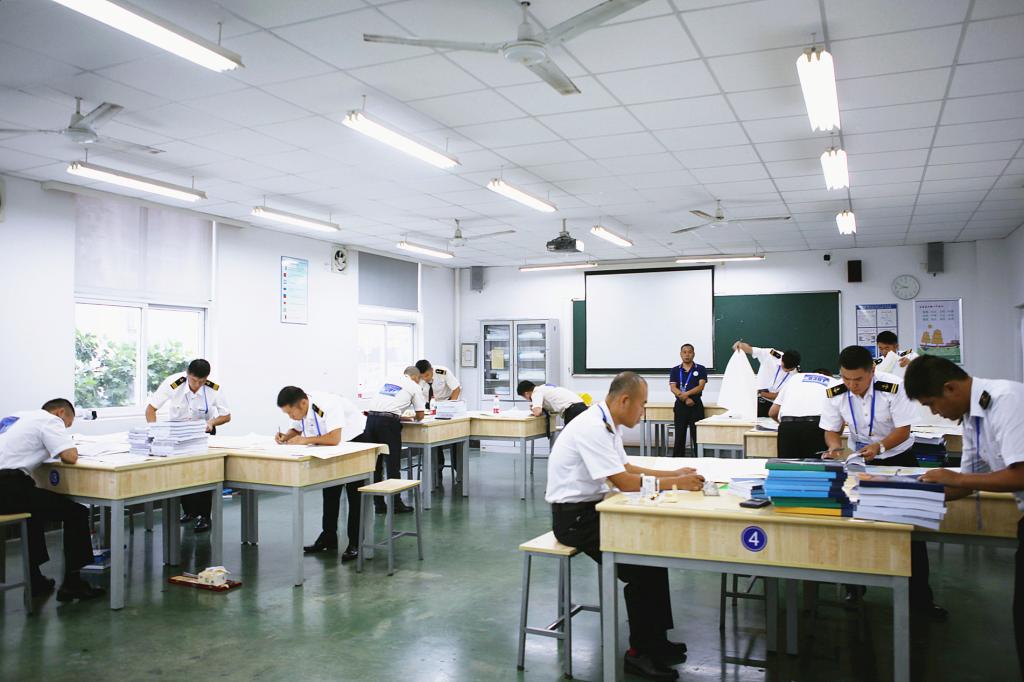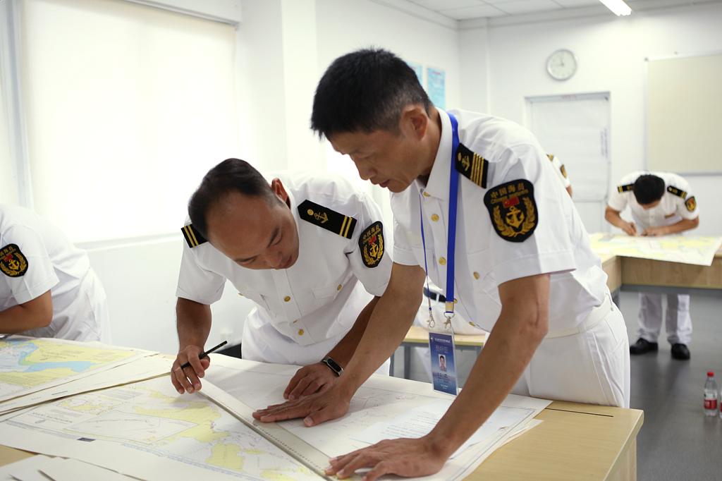上午8点半,航线设计在学校实训楼四楼海图室举行。13支企业队分别由1名船长和2名驾驶员组成代表队,在三小时内利用提供的海图图书资料,设计和绘画一条混合航线,并将航线信息转移到电子海图系统中,考量的是各队航线设计的合理、安全和经济。3个小时,参赛队员们分工明确、配合默契,资料翻页、笔尖划过纸张的轻微声响给寂静的赛场平添了紧张的氛围。