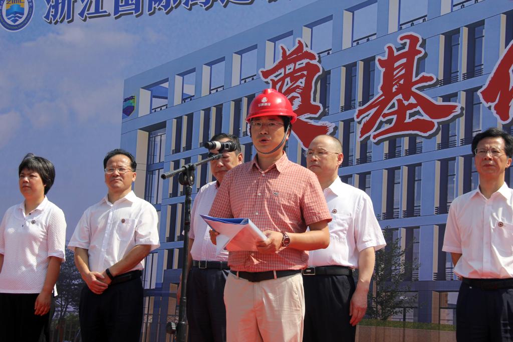 党委副书记、校长吴中平代表学校党政班子致辞。他说:社会服务与创业教育大楼项目建设是学校提高社会服务能力,深入推进创新创业教育的重要举措,得到了市委市政府的大力支持,被列入2018年舟山市本级政府投资项目年度计划。大楼的建成将进一步完善学校基本办学条件,满足大学生创新创业教育需求,为建设国际海事服务基地,促进“四个舟山”建设发挥作用。他要求项目管理、设计、施工和监理单位坚持“质量第一”的理念,高标准规划、严要求管理,高质量建设,把大楼建成优质工程、高校工程、安全工程、廉洁工程。