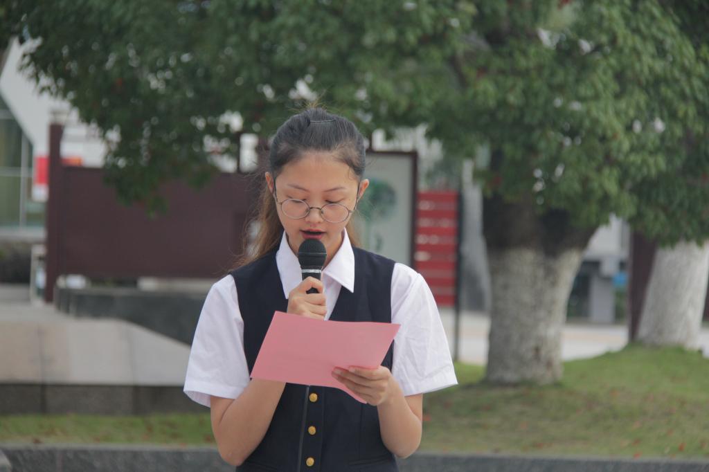 升旗仪式后,学生代表、海洋旅游学院陈涵意同学作国旗下演讲,“作为新时代的青年大学生,要继承和发扬崇高的爱国主义精神,热爱我们的祖国。‘青年兴则国家兴,青年强则国家强’我们要有担当、有作为,知行合一、学以致用,以青春梦想和实际行动为实现中国梦作出更大贡献。”