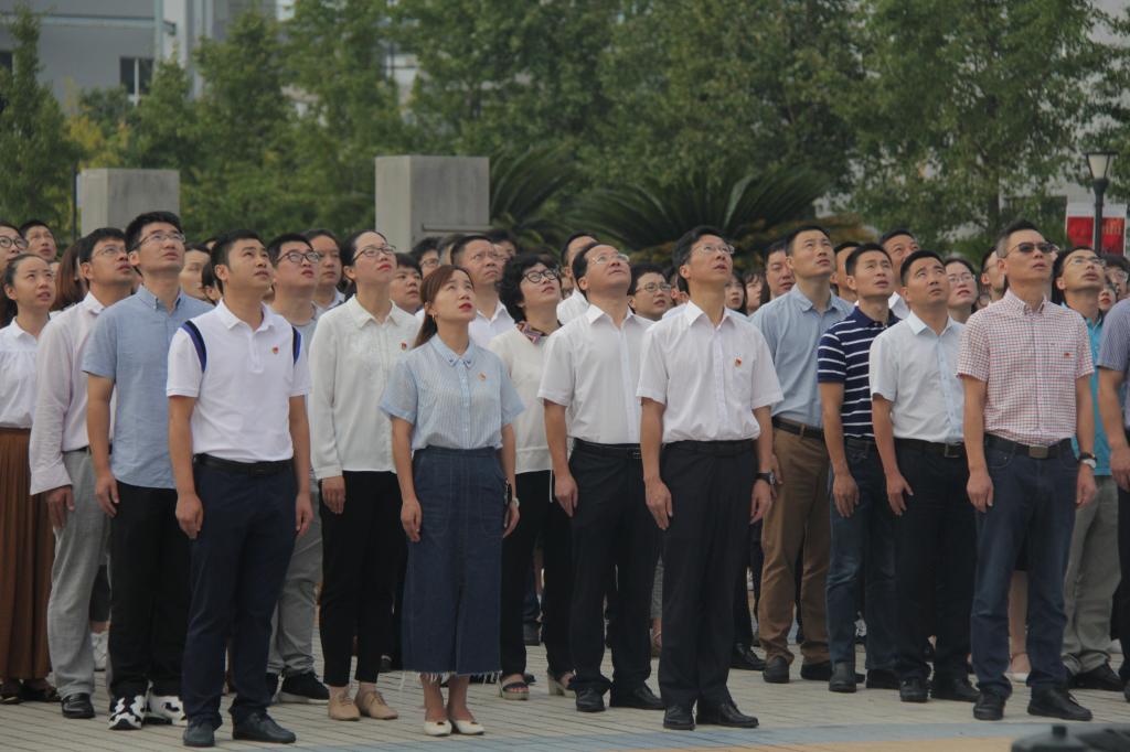 校党委委员、副校长曹志斌作国旗下讲话,他说,“70年来,共产党人坚定履行着‘不忘为人民谋幸福的初心、牢记为民族谋复兴的使命’的诺言。今天,全党上下正在举行“不忘初心 牢记使命”主题教育,是要再一次唤起共产党人的初心,唤醒共产党人的使命。让我们用知识和汗水,以满腔热情,拥抱新的希望;用崛起的跨世纪宣言,迎来全世界艳羡的目光;用我们的青春和力量一起为中华民族伟大复兴的中国梦添砖加瓦!”