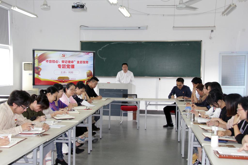 校党委委员、副校长孔志光以《感悟初心使命 努力推进学校教育国际化》为题,结合学院实际,为国际教育学院党支部上专题党课。从“初心和使命”是什么、为什么要“不忘初心、牢记使命”、如何践行“不忘初心、牢记使命”等三个方面进行了主题鲜明、内容详实、紧贴实际地讲解,帮助学院党员干部进一步明确了初心和使命的重大意义和深刻内涵,指明了今后努力方向。