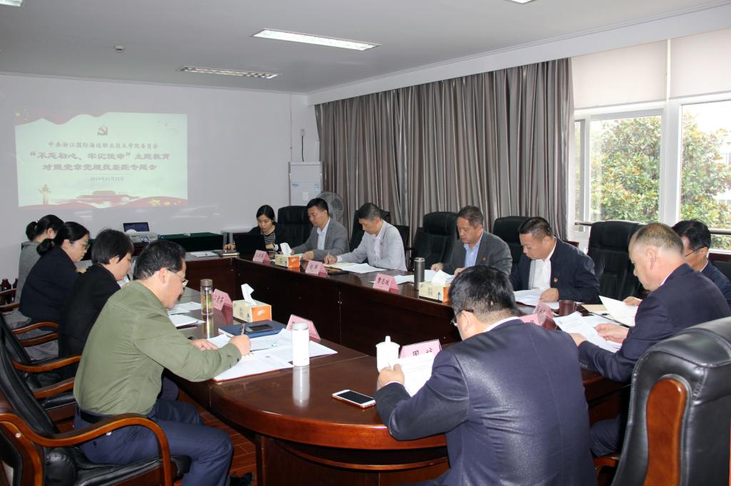 会议在深入学习党章党规和学习贯彻习近平总书记在全国教育大会上重要讲话精神的基础上,对照《中国共产党章程》、《关于新形势下党内政治生活的若干准则》、《中国共产党纪律处分条例》有关规定,聚焦“18个是否”,把自己摆进去、把职责摆进去、把工作摆进去,全面查找违背初心和使命的各种表现,一条一条列出问题,不断深化对党章党规的认识,提升政治境界、思想境界、道德境界。