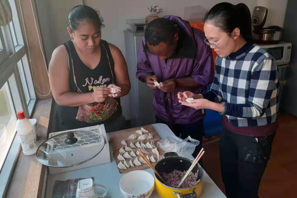 为了能让巴新教师尽快融入中国的生活环境,航海工程学院选派徐超老师专门负责他们的日常生活,并为他们开设中文课。目前,三名巴新教师非常适应在我校的生活,他们不仅能自己坐公交车逛街购物,还能在寝室厨房包饺子。他们体验到了中国经济的蓬勃发展所带来的各项生活便利。在上周举行的我校第十四届教职工运动会中,巴新教师积极参与,为航海工程学院的各项比赛成绩锦上添花。巴新教师Brian说:“感谢你们安排我们参加运动会,让我们有如此美妙的经历,尤其是拔河项目,太棒了,了不起!”