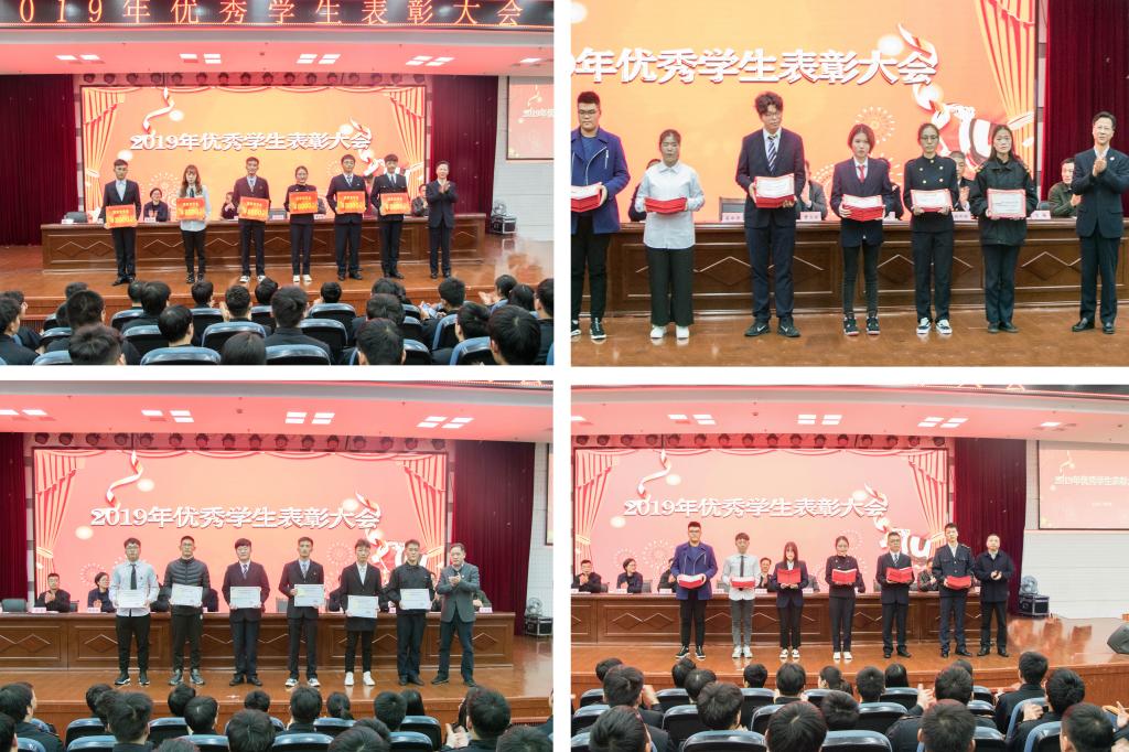 会上,学校教务处处长叶明君宣读了《关于表彰2019年专业技能奖学金、文体宣传奖学金获奖学生和团队的决定》,团委书记徐盈宣读了《教育部关于2018—2019学年度本专科生国家奖学金获奖学生名单的公告》、《关于2018-2019学年度浙江省普通高等学校本专科生国家励志奖学金获奖学生名单的公告》、《关于2018-2019学年度浙江省普通高等学校省政府奖学金获奖学生名单的公告》《关于表彰2018-2019学年先进班级、先进个人的通知》等表彰文件,吴中平校长和曹志斌副校长等领导为优秀学生、先进集体颁发荣誉证书。港口管理学院2017级物流管理3班国家奖学金获得者王统代表所有获奖学生进行了题为“仰望星空 脚踏实地”的发言,他结合自身的成长经历,鼓励所有学子要有“仰望星空”的抱负,但更要有“脚踏实地”的努力。