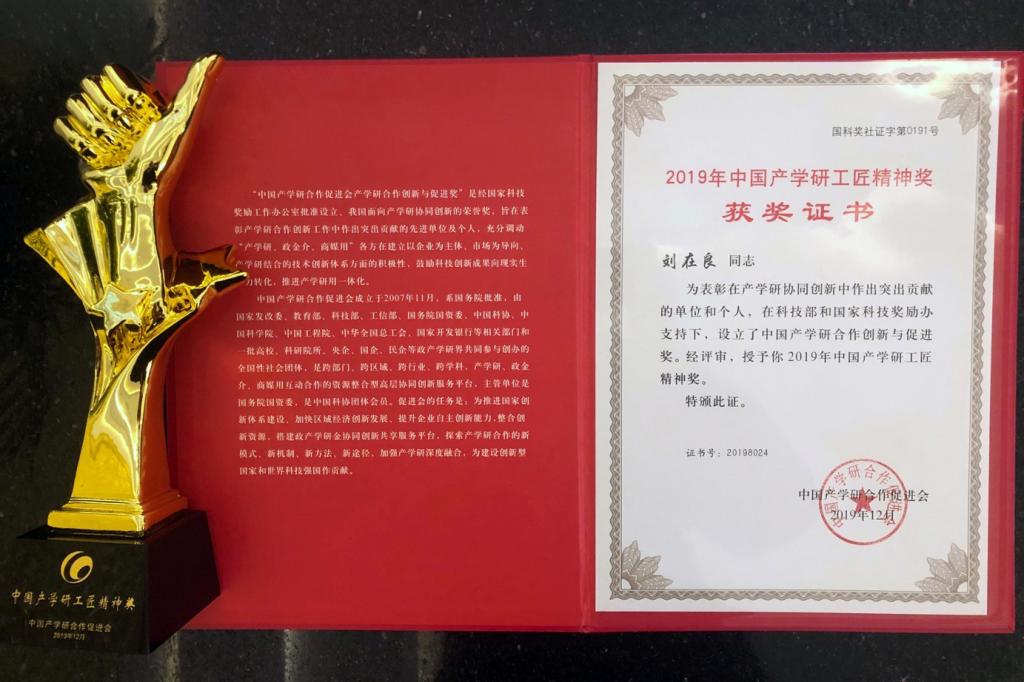 刘在良教授荣获2019年中国“产学研工匠精神奖”