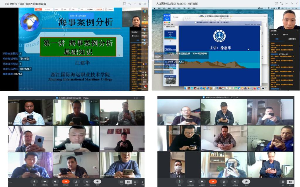 当前正处于防疫和复工复产关键期,为解决新冠肺炎疫情期间船员培训和换证需求,学校急船员之所急,主动作为,在4月中旬成为浙江辖区首批获准开展线上船员培训资格的单位后,立即组织开设了海船船员适任证书知识更新培训班。为确保培训教学的顺利进行,学校严格细致地落实师资组织与培训、线上教学监督、线上考试组织等各环节工作,并由浙江海事局对培训教学全过程进行了实时监督。在教学过程中,师生互动有序,考勤严格规范,达到了预期的效果。