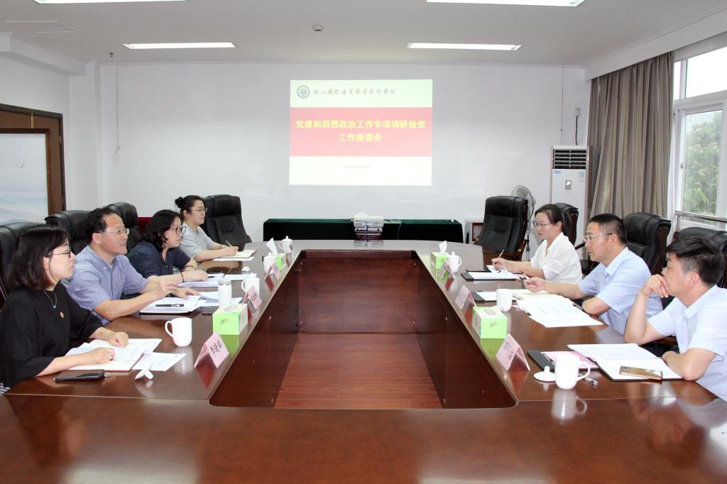 6月19日上午,舟山市教育局党委副书记杨永明、市教育局机关党委专职副书记邓引远、市教育局高教与职成教副处长周静一行来我校开展党建和思想政治工作专项调研检查。学校党委委员、副校长孔志光,学校党委委员、组织部(人事处)部长(处长)方晓红,学校党委组织部相关人员参加座谈会并陪同走访调研。