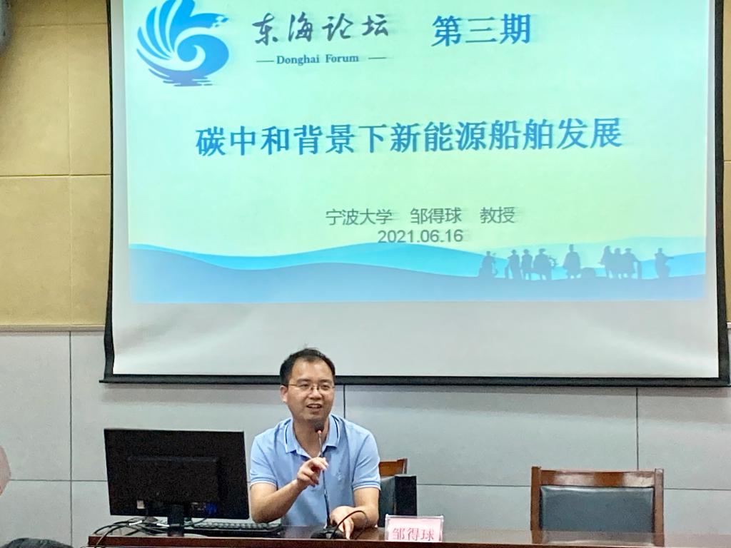6月16日下午,学校“东海论坛”举行第三期学术讲座,邀请了宁波大学教授、博士生导师、邹得球博士作“碳中和背景下新能源船舶发展”专题讲座。科研处处长郭飞军教授主持会议,来自学校科研处、航海工程学院、船舶工程学院、国际教育学院、港口管理学院等科研团队负责人及教师50余人聆听了报告。