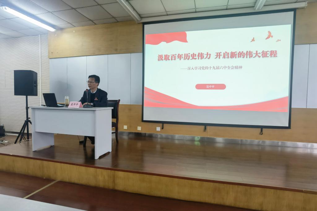 吴中平校长重点讲解了《中共中央关于党的百年奋斗重大成就和历史经验的决议》,围绕“一个历史使命、两个确立、三次理论飞跃、四个历史时期和伟大成就、五大历史意义、十个坚持宝贵经验和十三个方面的历史性成就、历史性变革”等七个方面对党的十九届六中全会精神进行了系统全面的阐述,内容丰富,分析透彻,具有很强的理论性、针对性和指导性。