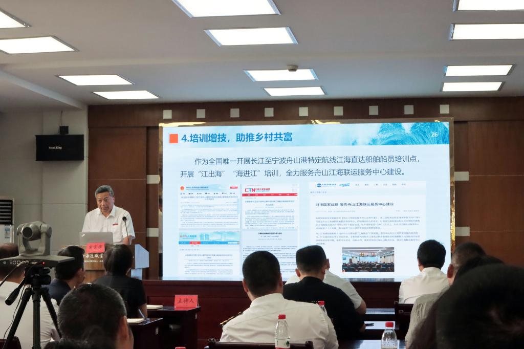 会上,舟山市港航和口岸管理局副局长曹军作了《推进江海联运高质量发展,打造双循环战略海上枢纽》主题报告,从舟山江海联运服务中心建设的背景意义、十三五以来江海联运建设情况、下一阶段工作做了介绍与分析。
