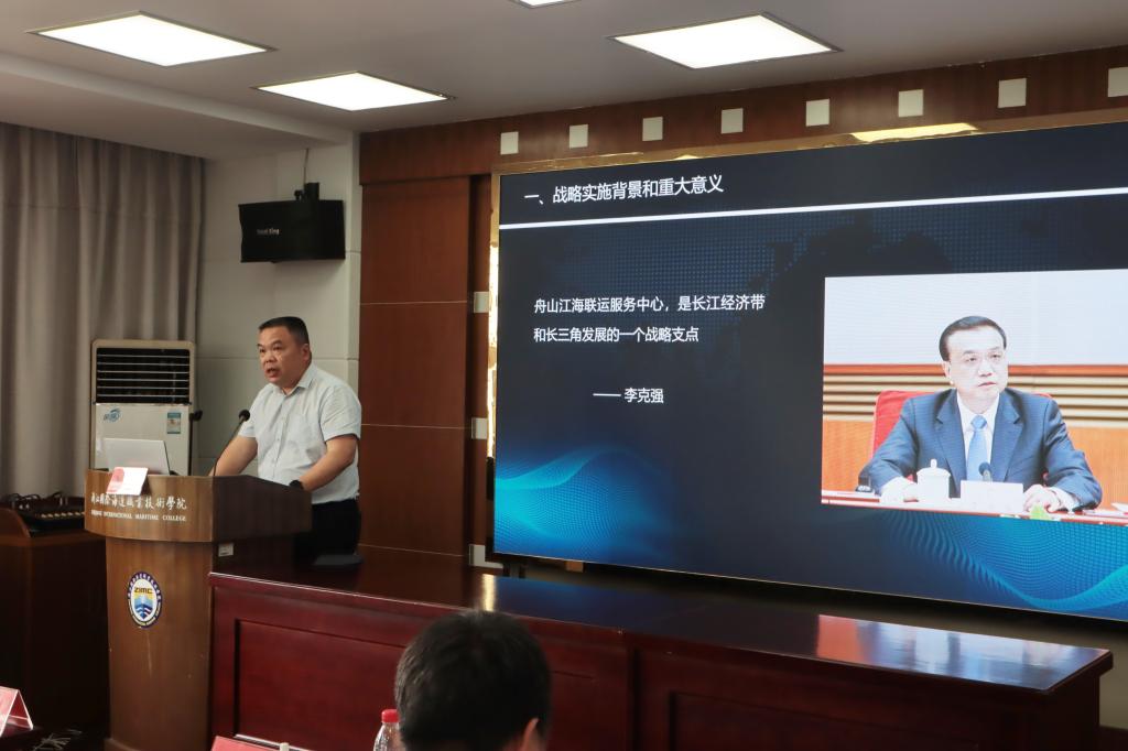 随后学校航海工程学院院长、教授汪益兵作了《深化产教融合,服务江海联运》主题报告,分析了建立“江海联运”产教联盟的意义、运作内容与发展目标,提出了实施产教融合工程,发展高质量国际海员的具体举措。