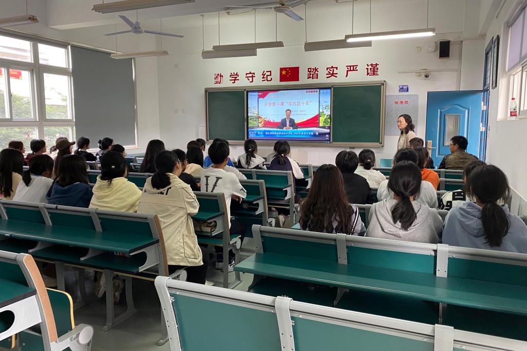 吴中平校长通过总结“国家、浙江、舟山和学校”四个维度十年来的鲜活案例、生动故事和巨大变化,带领同学们全面回顾了国家、浙江、舟山和学校“非凡这十年”所取得的丰硕成绩,激励同学们更加的热爱国家、热爱浙江、热爱舟山和热爱学校,激发广大同学们努力学习,奋勇拼搏的思想自觉和行动自觉。