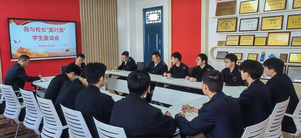 11月23日下午,航海工程学院在海慧楼309党员活动室举行我与校长“面对面”座谈会。校长吴中平与2021级航海技术2班的学生代表进行了面对面交流,广泛听取了大家对学校、学院发展的意见建议。航海工程学院党总支书记李刚、副书记李军,办公室副主任杨加力参加座谈。