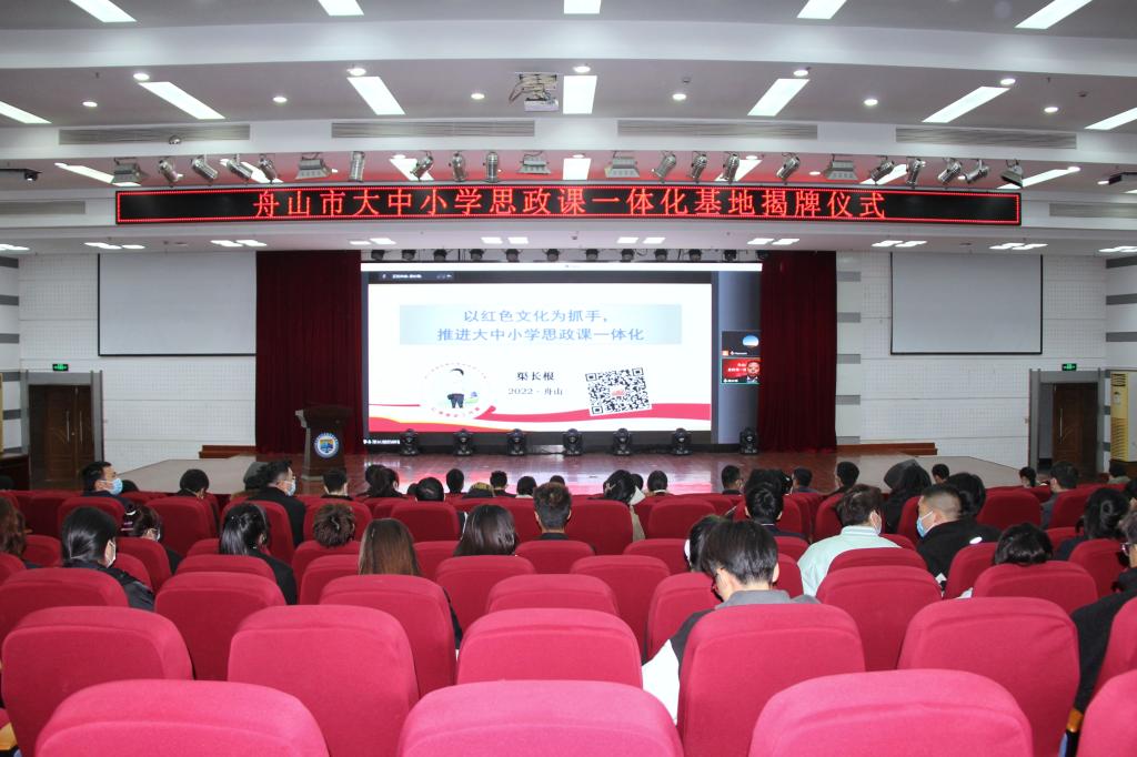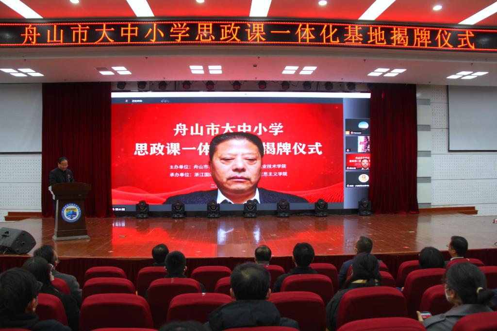 中共舟山市委宣传部副部长章隽达和我校党委书记苏为泽共同为舟山市大中小学思政课一体化基地揭牌。该基地设在我校,旨在以高校的“大手”拉住中小学的“小手”,努力推进大中小学思政教育理念一体化、队伍建设一体化、研修备课一体化、考核评价一体化。这也是我校落实省委教育工委、省教育厅11月23日印发的《关于推进大中小学思政课一体化建设的实施意见》的实际行动。