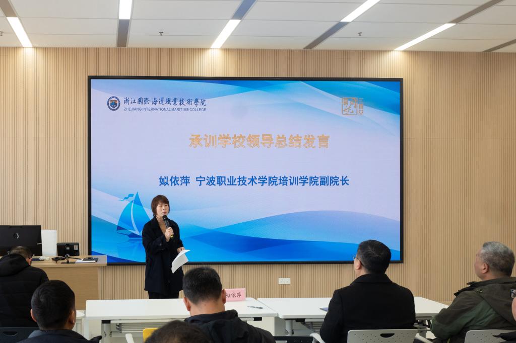 研修班结营仪式由教务处处长郑燕华主持。结营仪式上,姒依萍副院长回顾了本次研修从培训课程内容的设计、课程安排与实施、有效课堂建设认证等情况和难忘的点滴,依据参训教师提交的课程整体设计、单元设计、教学录像、教学案例和教学反思等作业,共评审了航海工程学院江建华的《船舶值班与避碰》等10门金课,航海工程学院胡贤民的《船舶辅机》等11门优质课,期望老师们继续深耕在自己的教学里,并从中发现乐趣和成就。