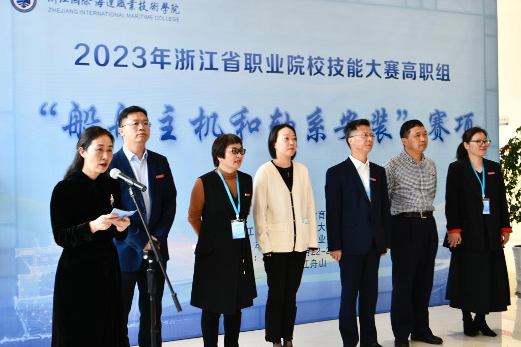 4月22日,2023年浙江省职业院校技能大赛“船舶主机和轴系安装”赛项开幕式在我校综合实训楼一楼大厅举行,这是该赛事创办以来首次在我校举办。赛项专家、裁判长浙江海事局船员考试中心调研员任德夫,舟山市教育局职成教处处长钟王燕,赛项执委会主任、学校校长吴中平,赛项执委会副主任、学校副校长李丽,航海工程学院党总支书记李刚,海洋装备工程学院党总支书记罗秀峰等出席开幕式。开幕式由教务处副处长郭娟主持。