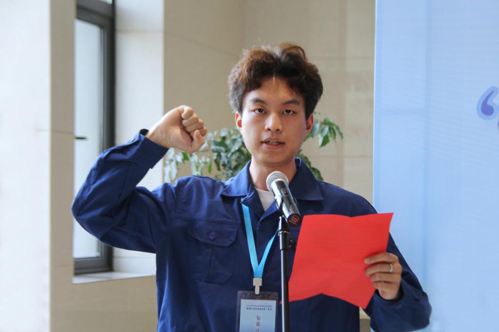 海洋装备工程学院的刘斌同学代表全体参赛队员发言,他表示在本次竞赛中将以饱满的精神,认真参赛,展现良好的竞技精神和道德风尚;严格遵守比赛规则,服从裁判,尊重对手,保证大赛顺利进行;认真对待比赛,赛出水平,赛出风格、赛出成绩。