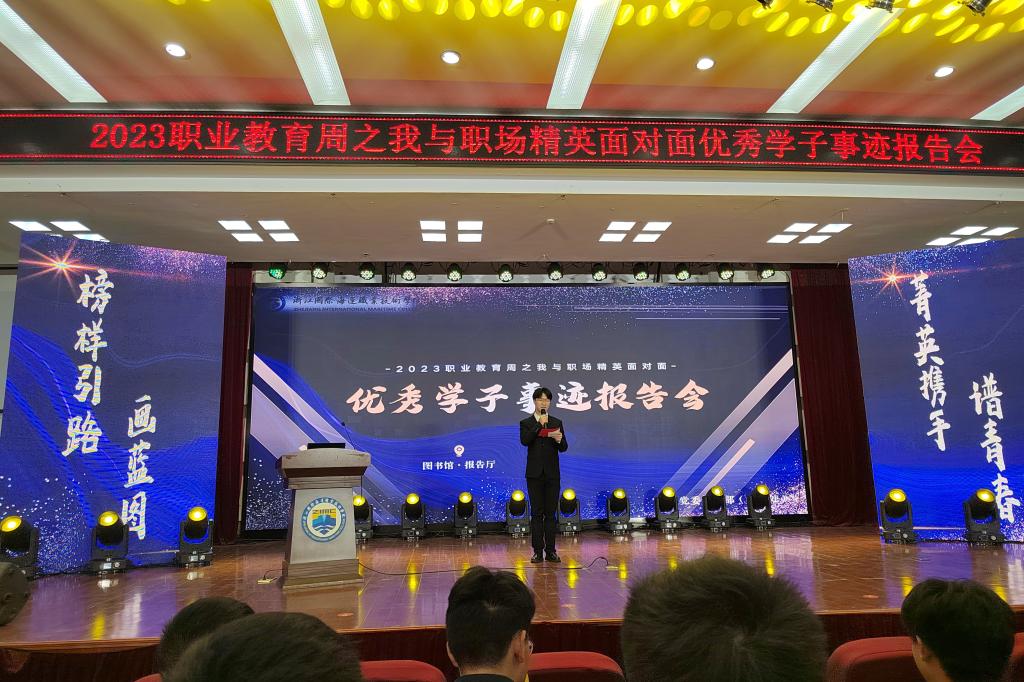 5月17日,由校党委学工部主办的“榜样引路画蓝图 菁英携手谱青春”2023职业教育周之我与职场精英面对面暨优秀学子事迹报告会在图书馆报告厅成功举办。校领导苏为泽、吴中平、孔志光,办公室、学工部负责人及各二级学院的书记、副书记参加了此次报告会。