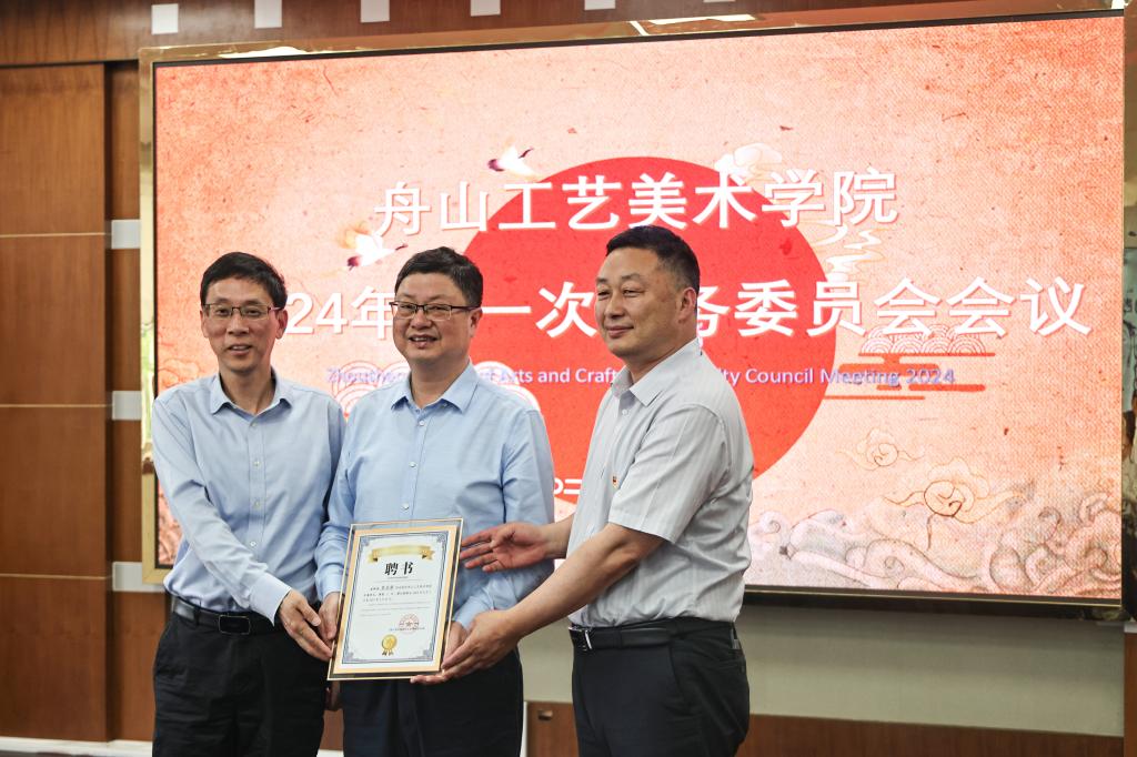 舟山工艺美术学院由舟山市经济和信息化局与我校共同发起,旨在深入贯彻习近平总书记关于做好历史经典产业传承保护和创新发展的重要论述精神。会上,与会人员对《舟山工艺美术学院章程》、舟山工艺美术学院院务委员会名单调整、秘书处工作人员调整进行审议。夏志刚对2023年的工作进行了总结,同时对2024年的工作进行了规划。会议中,委员会一致推选苏为泽书记担任名誉院长,并举行了聘任仪式。