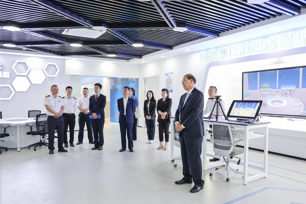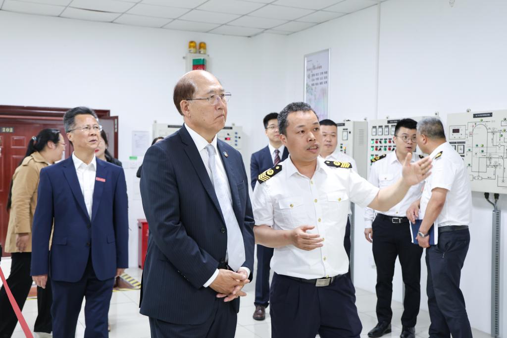 林基泽先生此行来舟山参加由浙江大学承办的“第六届长江经济带研究与创新联盟国际学术会议”,在了解到我校的航海教育和办学特色后,受邀来我校访问。林基泽先生参观了我校航海操纵模拟器、国家级航海虚拟仿真中心、轮机模拟器、邮轮实训室等教学实训场所。