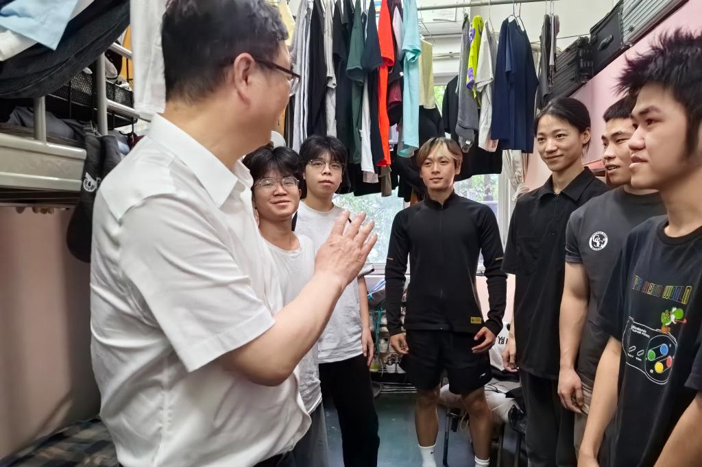 6月17日下午,校党委书记苏为泽深入学生寝室走访看望学生。苏为泽书记与同学们亲切交流,关心他们在校的生活学习情况,并亲切叮嘱要注意寝室用电、电瓶车规范充电等消防安全,同时提高防诈意识。
