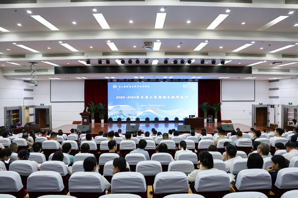 为深入学习贯彻党的二十大会议精神,贯彻落实《关于深化现代职业教育体系建设的改革意见》、深化“三教”改革、强化教师教学创新团队建设,不断拓宽教师职业教育改革与创新的思路和方法,提高教师的综合素质和能力,7月8日上午,由学校教务处(教师教学发展中心)组织的“2023-2024学年第二学期期末教师培训”在图书馆四楼报告厅顺利开展,校领导、各教学单位负责人、全校教师参加了培训。培训会由副校长李丽主持。