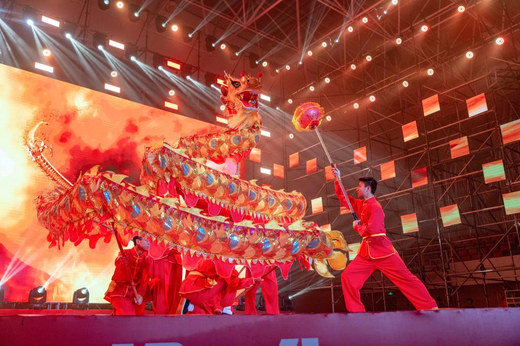 开场的《龙腾虎跃》舞龙舞狮表演为庆典增添了额外的喜庆与热闹。威武的狮子、矫健的飞龙在舞台上翻腾跳跃,既展现中国传统文化的魅力,又体现学校蓬勃发展的生机。