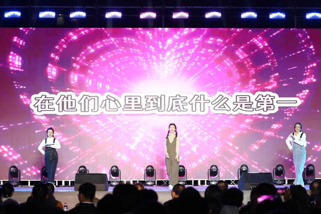 本次演出在学校舞狮队的《龙腾虎跃》中拉开帷幕,共分为三个篇章。第一篇章“扬帆启航”以充满情感和故事性的歌舞、情景剧,展现了历史壮阔和文化魅力;第二篇章“筑梦成长”通过舞蹈和音乐演绎,传递出师生融洽的关系和校园生活的美好;第三篇章“展望前行”用充满活力的舞曲表达了学生们对个人成长和学校发展的憧憬与向往。随着熟悉的歌曲《篇章》,参与演出的师生们再次登台,共同演绎这首充满青春气息的歌曲,台上台下融为一体,所有观众随着音乐节奏挥动双臂,齐声高歌,将现场气氛推向了最高潮。