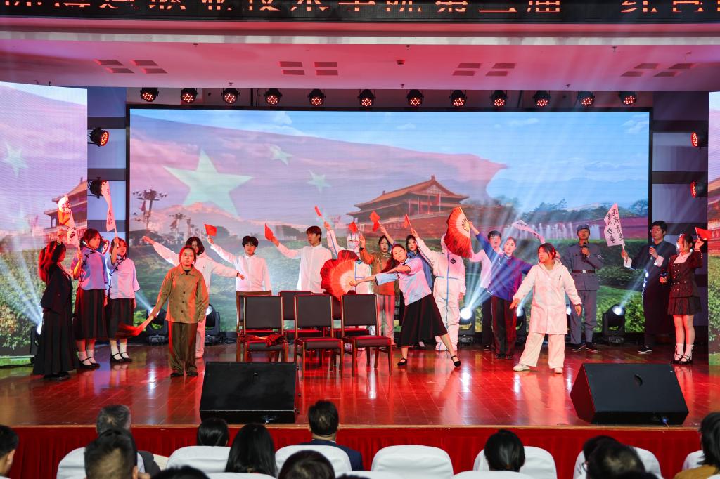 最后,现代港口贸易学院的蒋暄同学演唱了一首悲壮的爱国古风歌曲《赤伶》,展示了“位卑未敢忘忧国”的深厚报国情怀!