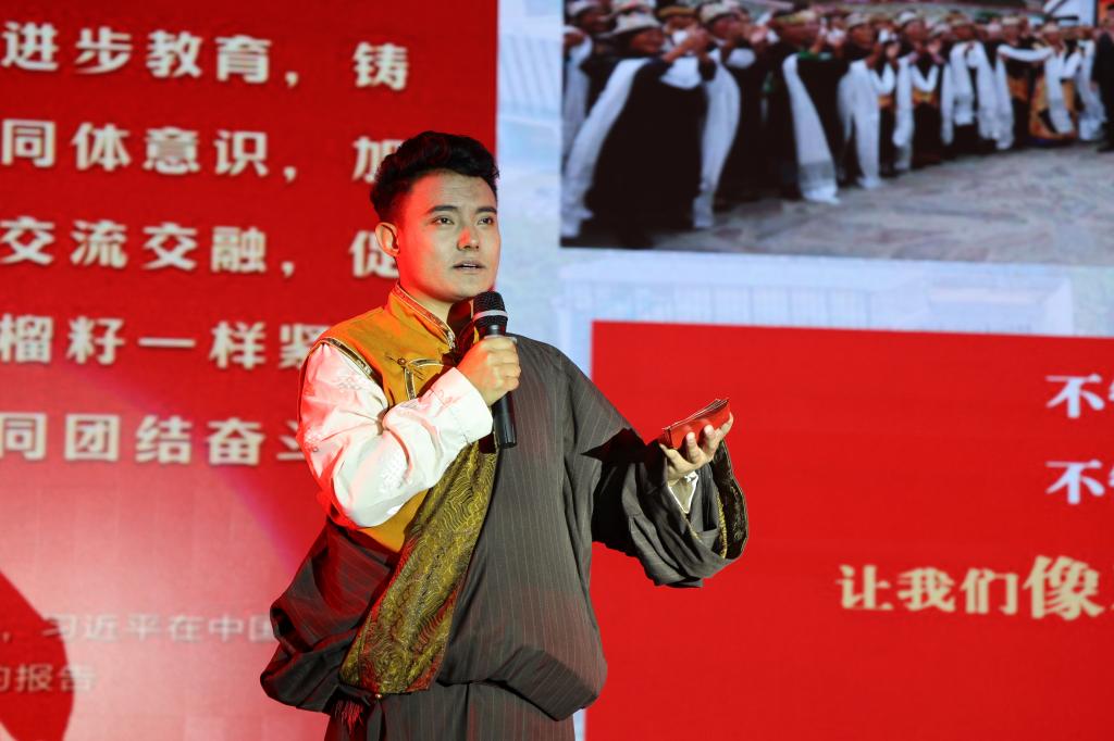 大赛在机关党总支选送的《从西藏到浙江 跨越5000公里的“那舟”情》中拉开序幕。4年前,一个来自那曲的藏族小伙曲培不远万里来到美丽的舟山群岛,成为我校一名光荣的人民教师,他分享了生活、学习、工作中锻炼成长及至收获事业家庭甜美成果的感人故事,传达了祖国各民族像石榴籽一样紧紧抱在一起手足相亲、守望相助、共同团结奋斗的深情厚谊。