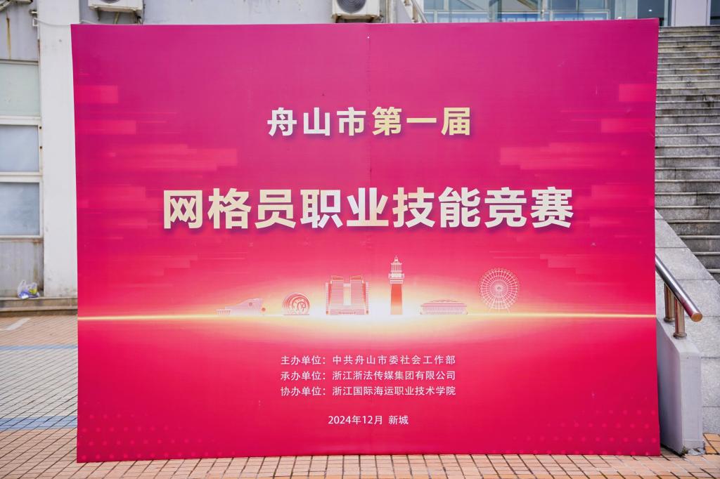 12月10日,由舟山市委社会工作部主办,浙江浙法传媒集团承办,我校东海教育学院(职业培训中心)协办的舟山市第一届网格员职业技能竞赛在我校图书馆报告厅顺利举行。舟山市委副秘书长、市委社会工作部常务副部长、市委两新工委书记张立,市委社会工作部副部长、二级调研员傅其海,市人力资源和社会保障局四级调研员沈建明,浙江浙法传媒集团编委陈晓青,我校党委副书记孔志光,党委委员、副校长夏志刚,党委委员、组织部部长、办公室主任张海波等单位相关负责同志出席活动。