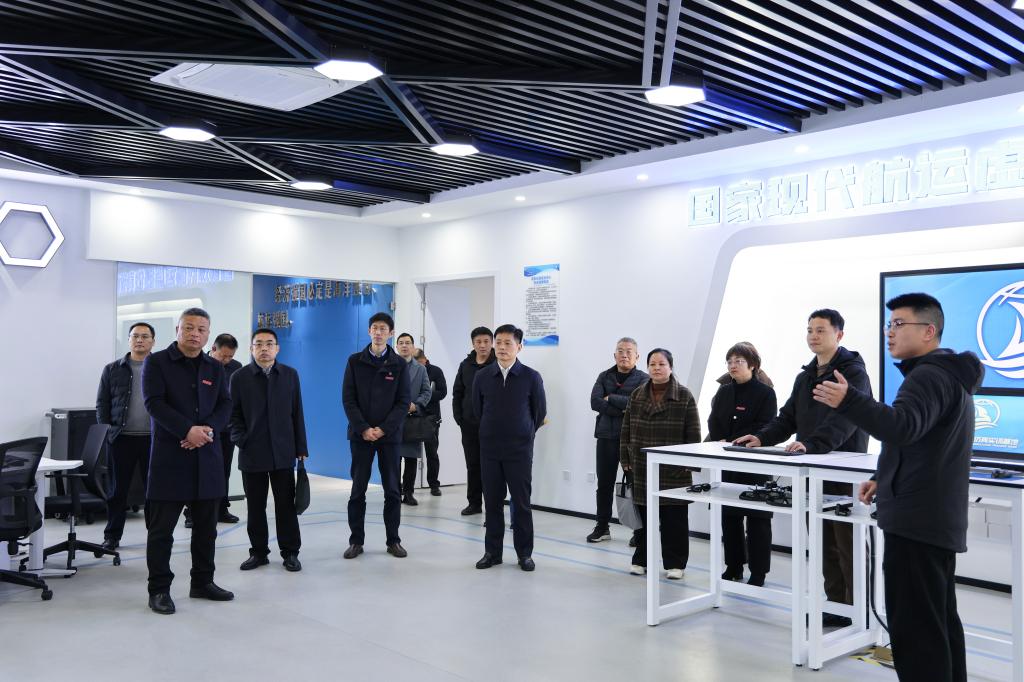 胡恒锁秘书长一行依次参观了校史馆、航海操纵模拟器、国家级现代航运虚拟仿真实训中心、轮机模拟器、船舶知识馆等教学场所,并亲身体验了我校自主研发的虚拟仿真教学系统。吴中平校长详细介绍了学校办学情况,重点汇报了在人才培养、“双高”建设、科技创新、教育改革和学科建设等方面取得的突出成绩。