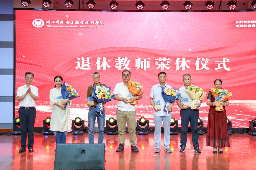 退休教师荣休仪式中,6位退休教师代表接过荣休纪念杯,这不仅是对他们数十年坚守教育岗位的崇高致敬,更承载着学校对老教师的深切关怀。