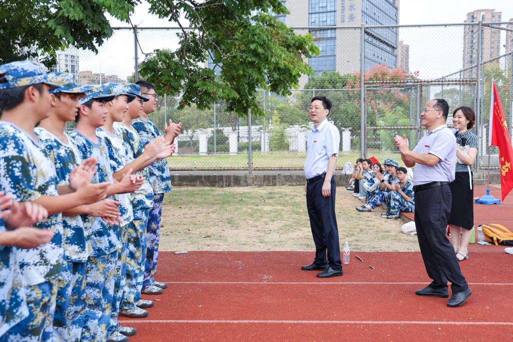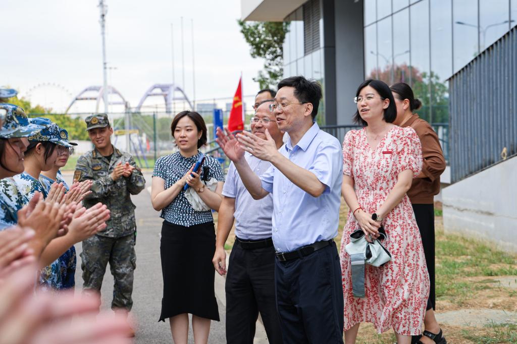 9月18日下午,学校党委书记蔡志军,党委副书记孔志光,党委委员、组织部部长张海波一行前往2025级新生军训现场,亲切看望、慰问承训教官与参训新生,详细了解军训进展、训练成效及各项保障情况。学工部、各二级学院相关负责人陪同参加慰问。