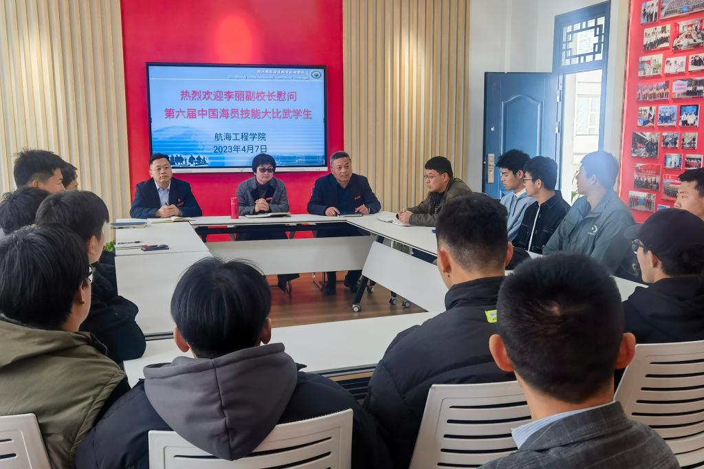 为推进第六届中国海员技能大比武备赛工作,深入了解参赛队员训练状态,鼓舞士气,4月7日下午,航海工程学院在海慧楼309会议室召开第六届中国海员技能大比武师生座谈会。副校长李丽,航海工程学院院长汪益兵、党总支书记李刚、各赛项指导教师和参赛队员参加了座谈。