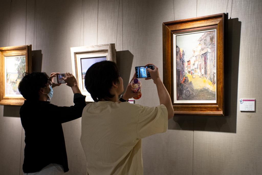 黄继波个人绘画艺术作品展由岱山县文化和广电旅游体育局、县文学艺术界联合会主办,展出了黄继波近年创作的42幅油画和水彩粉画作品,以海岛风情和生活风景为创作主题。参展作品色彩鲜艳生动,构图巧妙天成,令人赏心悦目,领略到作者对家乡风光的深厚情感。师生们在作品前驻足观看,不时发出感叹,全情投入到视觉的盛宴中,学生陆慧婕表示:“这是一次难得的机会,让我对艺术创作有了更深的了解,也更珍惜身边的美好事物。”