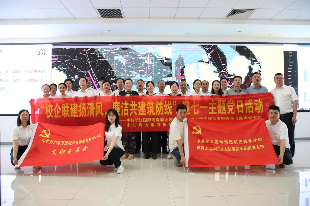为了加速校企党建共融,打造清正廉洁政企共同体,进一步扩大廉洁文化的感召力和影响力,以学促教提高党员们为民服务意识,养成廉洁自律意识和坚定信念信仰,6月21日下午,航海党支部与新一海万里党支部共同开展“校企联建扬清风,廉洁共建筑防线”迎七一主题党日活动。