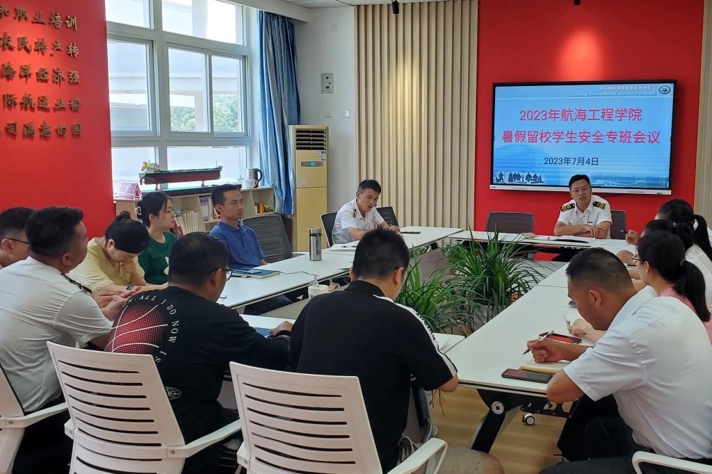 为落实学校关于暑期留校学生工作要求,进一步增强学生安全防范意识,切实保障留校学生生活、学习有序开展,近日,航海工程学院召开2023年暑期留校学生安全教育大会。学院党总支书记李刚、副院长黄华以及相关班主任、辅导员参加。大会由学院副书记李军主持。