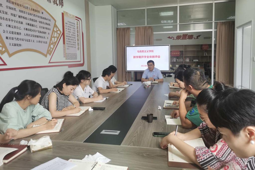 9月4日下午,马克思主义学院在图书馆207会议室召开新学期全体教职工大会。会议由马克思主义学院院长郑忠义主持。