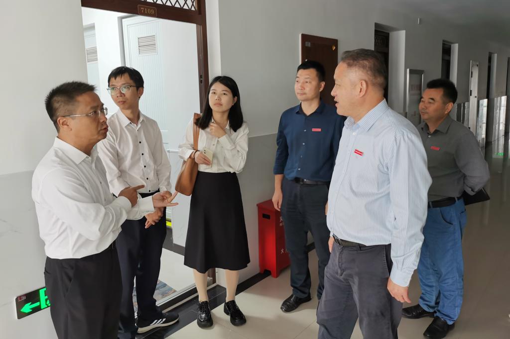 曹志斌副校长对陈国峰一行表示热烈欢迎,介绍了学校的基本情况和校区基础建设情况。近年来,学校紧扣地方产业发展所需,积极推动改革,不断加强校园建设投入,陆续新建了体育馆、田径场、社会服务中心、综合实训楼和67号学生宿舍楼,加快旧建筑的维修改造,及时处理沉降问题,提升师生教学、住宿条件,为学校事业发展提供了有力支撑。希望双方深入交流,推动资源共享、经验互补,共同提升学校基建能力和水平,推进学校事业高质量发展。