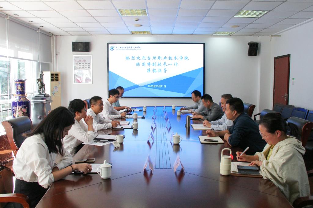 1011日下午,台州职业技术学院副校长陈国峰一行来校调研交流,学校党委委员、副校长曹志斌陪同座谈。后勤产业处相关人员参加。