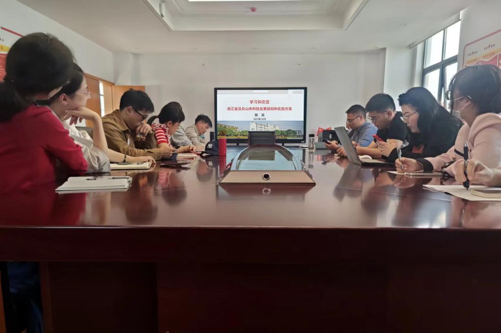 深入开展学习贯彻习近平新时代中国特色社会主义思想主题教育,落实我市《关于强力推进创新深化打造海洋科技创新港实施意见》文件精神,10月11日下午,石油化工学院副院长陈英教授线上作了题为《学习和交流——浙江省及舟山市科技发展规划和实施方案》的讲座,并开展了科研项目和成果的撰写和申报交流研讨。学院全体专任教师到场聆听并交流,讲座由院长杨加力主持。